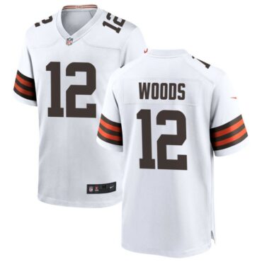 Cleveland Browns Michael Woods Custom Men’s Jersey – White